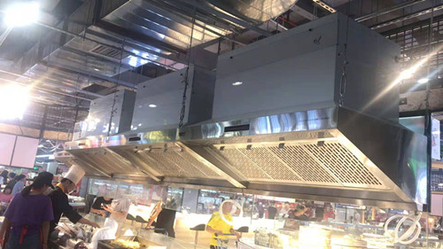 萬科旗下大型美食廣場應用案例,不需要連接復雜的排煙管道,節省大量材料成本,和人工清洗成本,室外“0”排放,室內室外無污染。